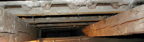 In vielen Gebäuden sind die Dachgeschosse als Wohnraum ausgebaut. Zwischen Zimmerdecke und Dacheindeckung befindet sich jedoch kein Dämmstoff. Vom Speicher kann man meist 2 bis 4 Meter (von der obersten Geschoßdecke bis zur Traufe) in die Dachschrägen blicken.![]() |