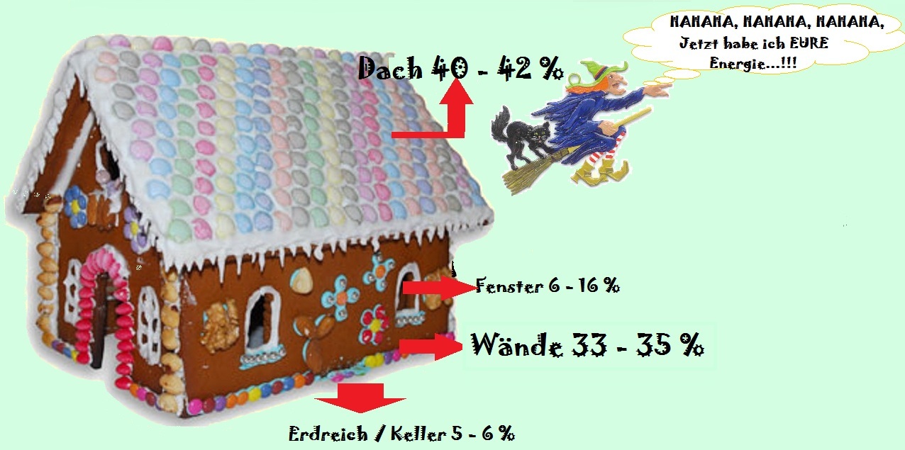 Energieverluste eines Einfamilienhauses ohne Dämmung: |